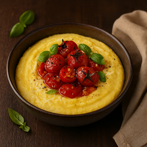 🌽 Кукурузная полента с сыром и жареными томатами.